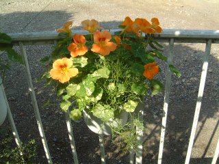 ああ、ナメクジに食べられた。と毎日思いつつも駆除してなかったんです。で、昨日ナメクジ駆除の薬をまいたのです。朝玄関あけてびっくり。ポーチにナメクジが大量にいたんです!!20匹くらいいたよ。パンジーとビオラのハンギングを分解したら一つのバスケットに5匹は潜んでいました。(T_T)こわいよー。きらいきらい。ナスタの写真とるの忘れました。